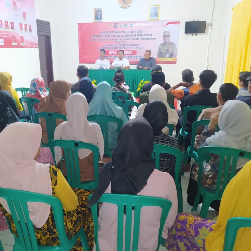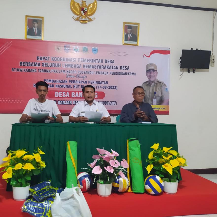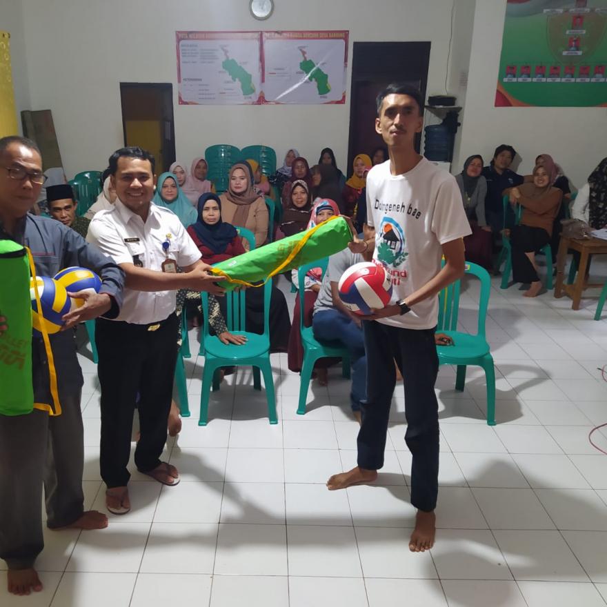 Penyerahan aset berupa 3 Buah Bola Volli, 2 Net, dan 12 Seragam Bola Voli dari Kepala Desa Bandung kepada Ketua Karang Taruna Cahaya Mekar Desa Bandung