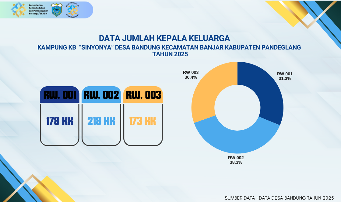 Data jumlah Kepala Keluarga (KK) di Desa Bandung, Kampung KB "Sinyonya", menunjukkan sebaran rumah tangga yang menjadi sasaran utama pelaksanaan program Keluarga Berencana dan pembangunan keluarga.