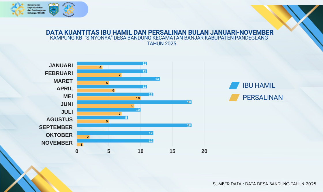 Data ini memberikan gambaran tentang beban layanan kesehatan maternal dan potensi kebutuhan stunting di Desa Bandung, Kampung KB "Sinyonya", selama sebelas bulan pertama tahun 2025.
