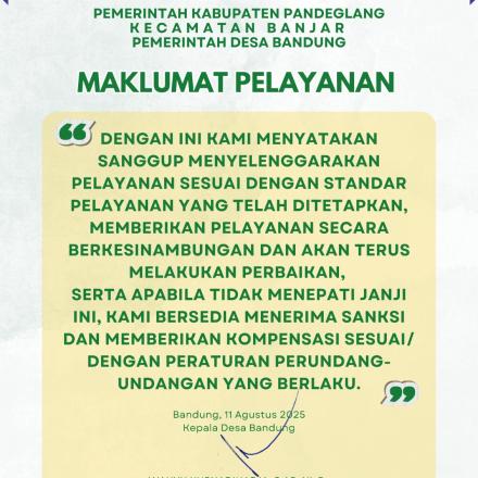 Selamat datang di Website Desa Bandung Kecamatan Banjar Kabupaten Pandeglang Provinsi Banten